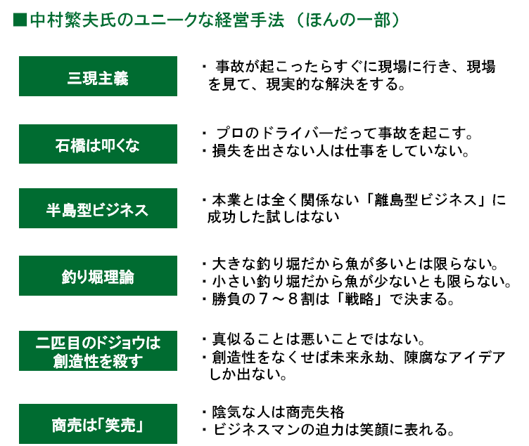 以前、『カンブリア宮殿』に、この中村繁夫氏が出演されているのを見て、「おもろいおっさんやなぁー」と思ったのであるが、書籍も大変面白い。ビジネス手法が非常にユニークなのだ。例えば、同社は、成績最下位の者は退職しなければならない、というルールがあるらしい。以前紹介した「メガネ21」のように、実にユニークだ。