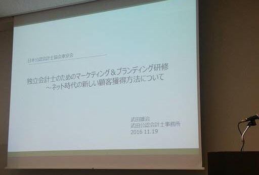 今日は、日本公認会計士協会東京会において、『独立会計士のためのマーケティング&ブランディング研修』という研修の講師をさせて頂きました。土曜日の朝の研修にも関わらず、100名以上の公認会計士の方が参加してくれました。