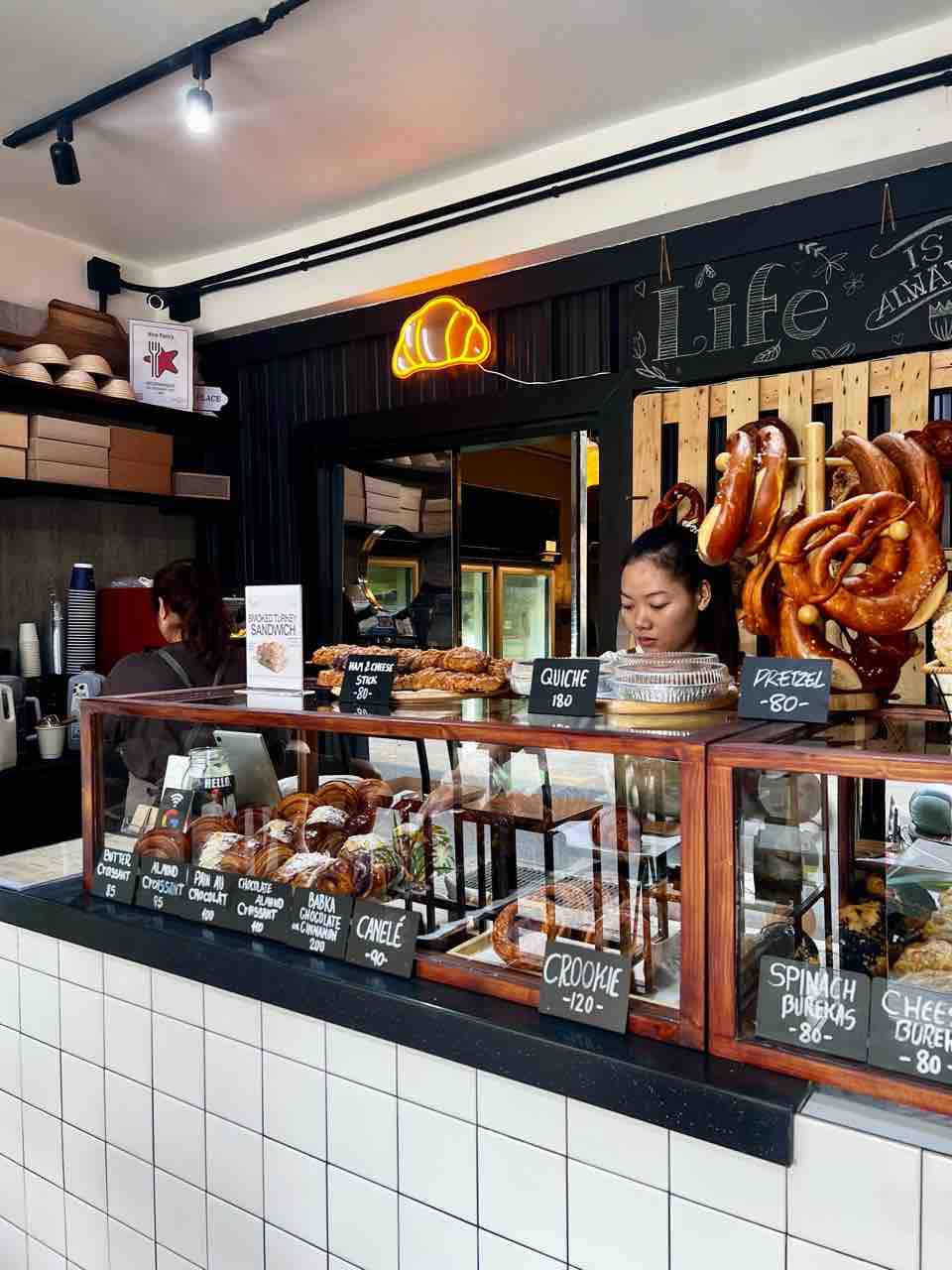 一昨日会ったバンコク在住の日本人の友達Cちゃんが、私が宿泊しているホテルから徒歩10分位の所に美味しいベーカリーがあると教えてくれたので、今日はホテルで朝食をとらずに、そのベーカリーへ行ってきた。『Nine Pastry』というお店。