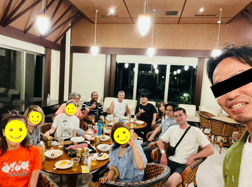 日が暮れてからは、北谷(基地の外)に住んでる米軍の友達のアパートメントのラウンジで飲み会。クラスの中では話したことがなかった人ともたくさん喋ることができた。あっという間の3時間。ボーリングから含めると8時間。It's been a long day!