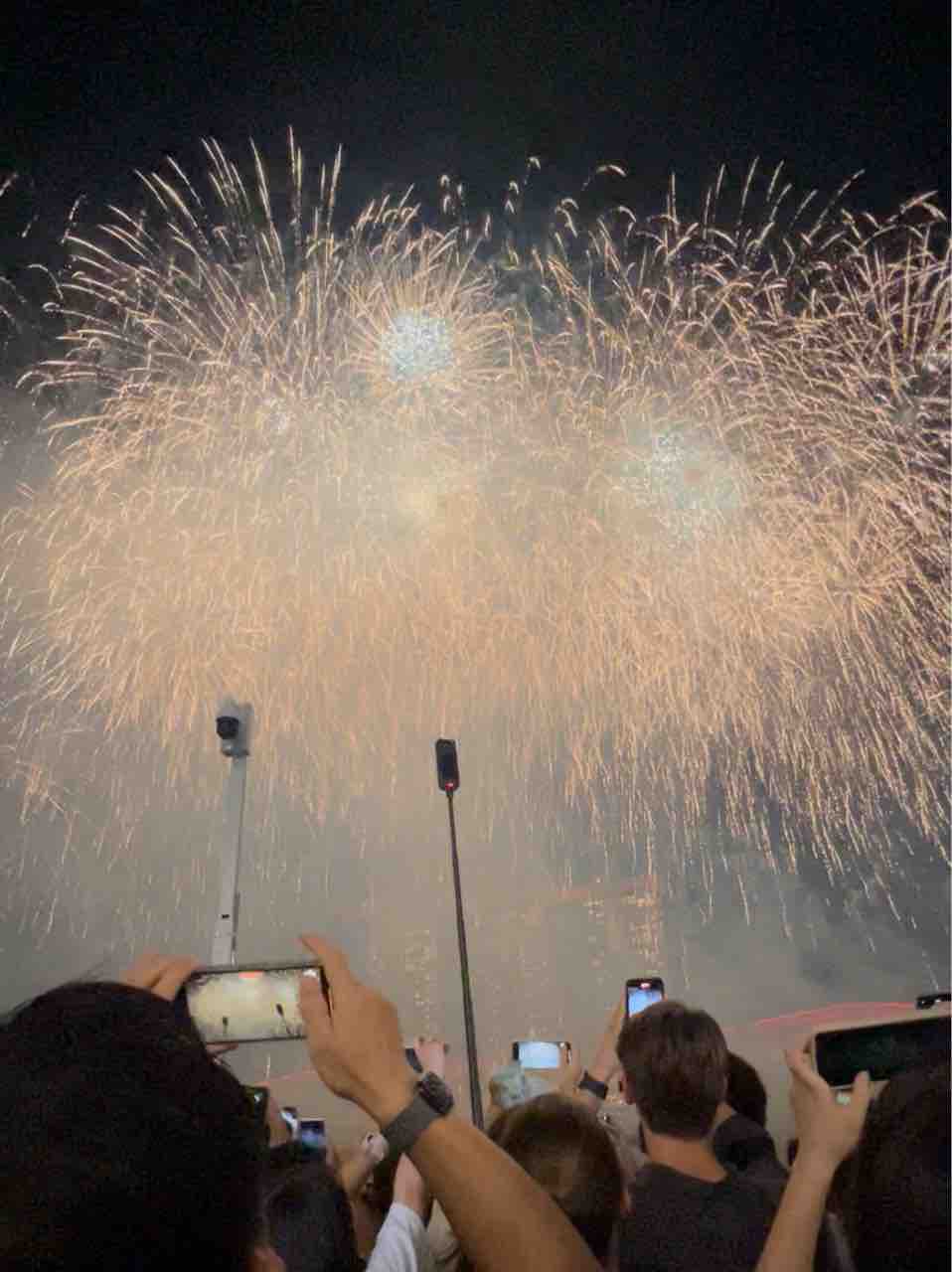 リハーサルなのにホンキ。上空を海軍の飛行機が飛びまくるわ、パラシュートで人が下りてくるわ、何十分にもわたりすごい花火があがるわ…。この国はやることが違う。
