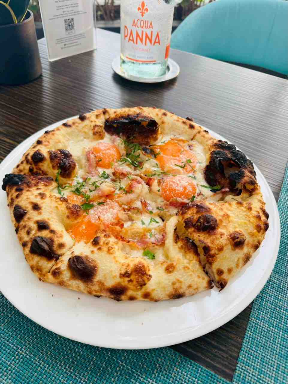 昨日食べようと思って食べられなかった「カルボナーラピザ」を食べることができた。ウマすぎる。