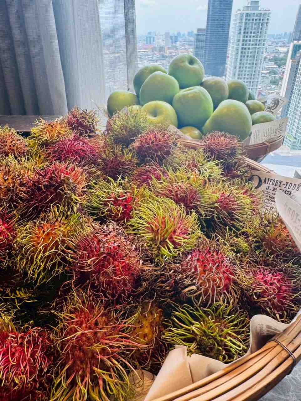 クラブラウンジには大量のライチなどの果物。いいねー。