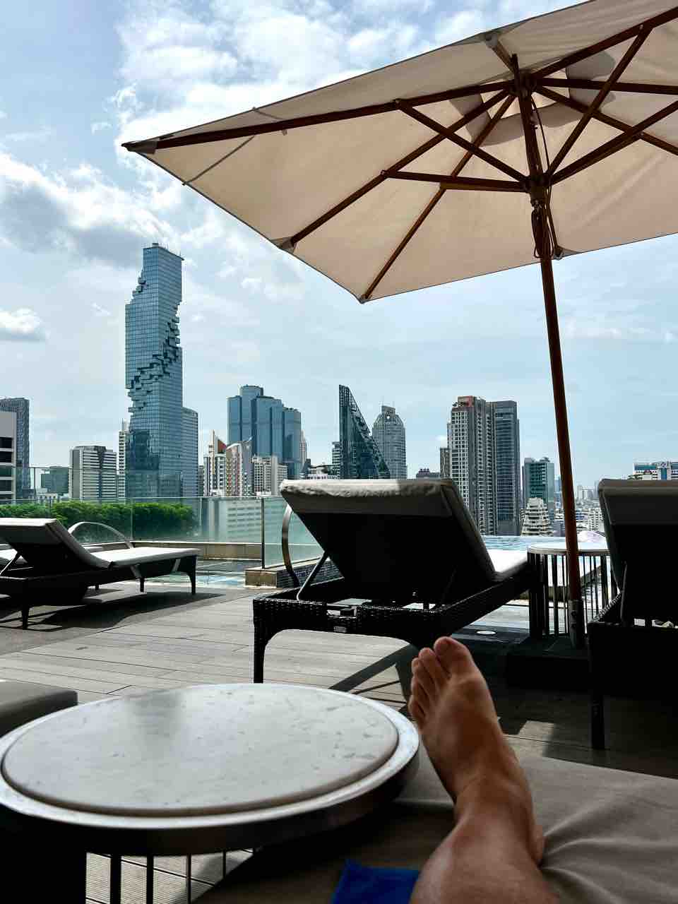 今回のホテル周辺は走る場所がないので、朝はプールサイドで読書。
