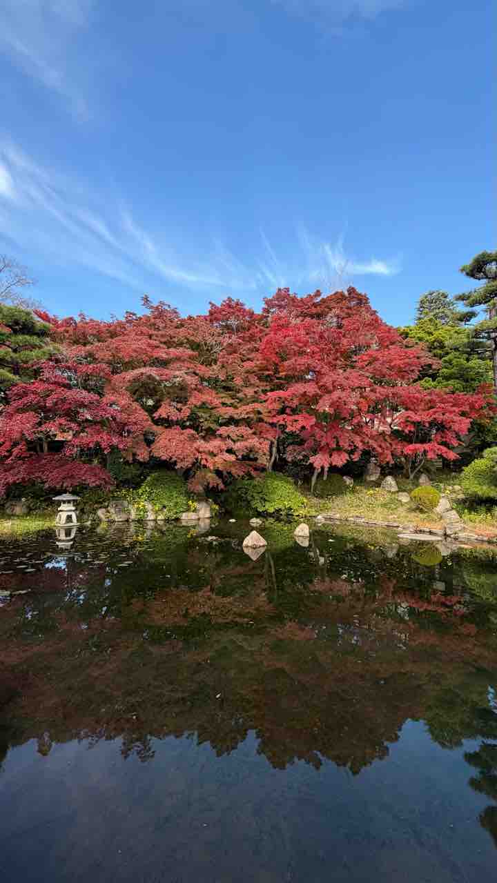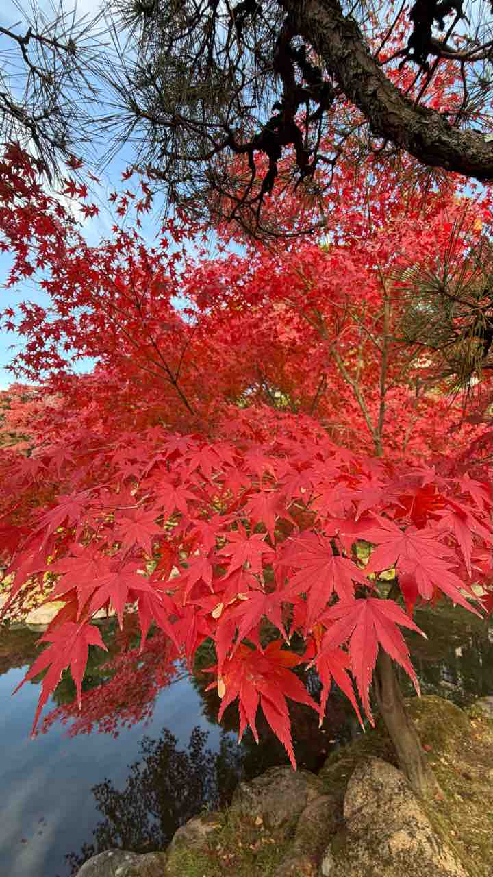 毎週この庭園で季節の移ろいを楽しんでいたが、遂に紅葉が真っ赤になった! 美しい!沖縄では見ることができない紅葉!